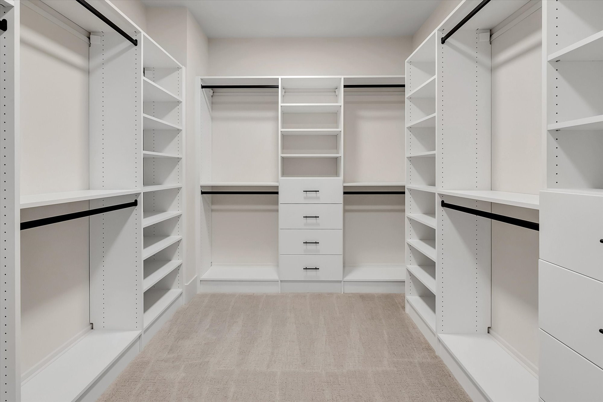 - Private bath/dressing area with double vanities and custom frameless cabinetry.