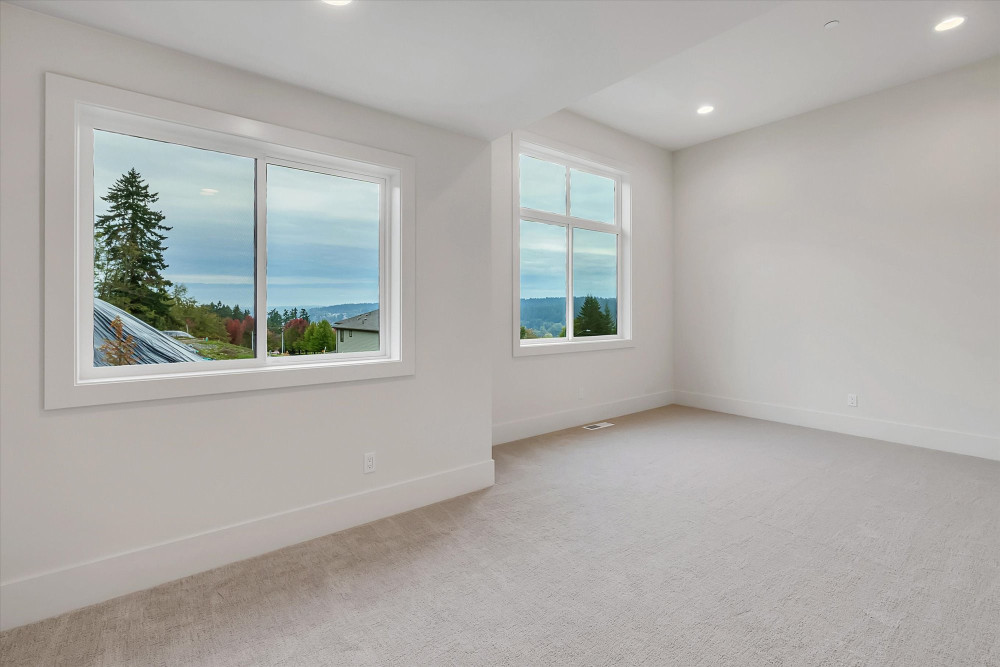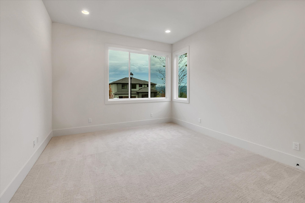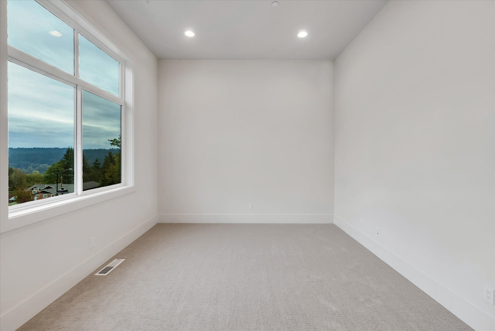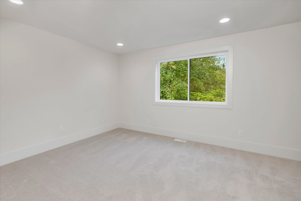 - Painted millwork includes 7” baseboard and custom window trim detail.