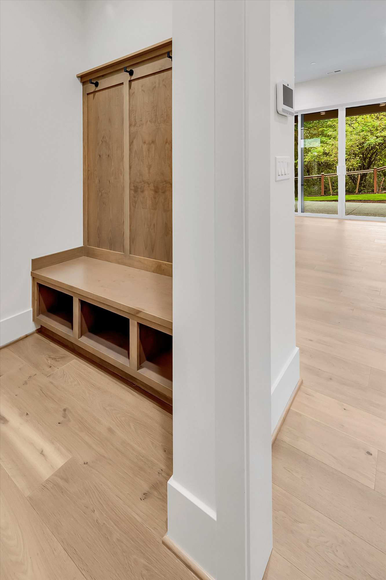 - Custom designed millwork around the exterior of the entry door and T & G cedar lined Entry soffits.